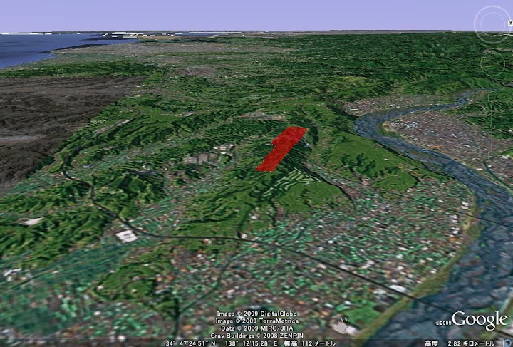 「カシミール3D」や、「Google Earth」の地図更新が遅れていることを利用して、「静岡空港が出来る前の原地形」を再現してみました。